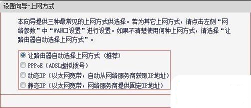 在我们设置路由器的过程中,路由器设置界面一般会给我们提供4种上网方式选项,分别是:“让路由器自动选择上网方式(推荐)”、“PPPoE(ADSL虚拟拨号)”、“动态IP(以太网宽带,自动从服务商获取IP地址)”、“静态IP(以太网宽带,网络服务商提供固定IP地址)”。为了更好的帮助到大家,下面分别对这四种上网方式做个介绍。