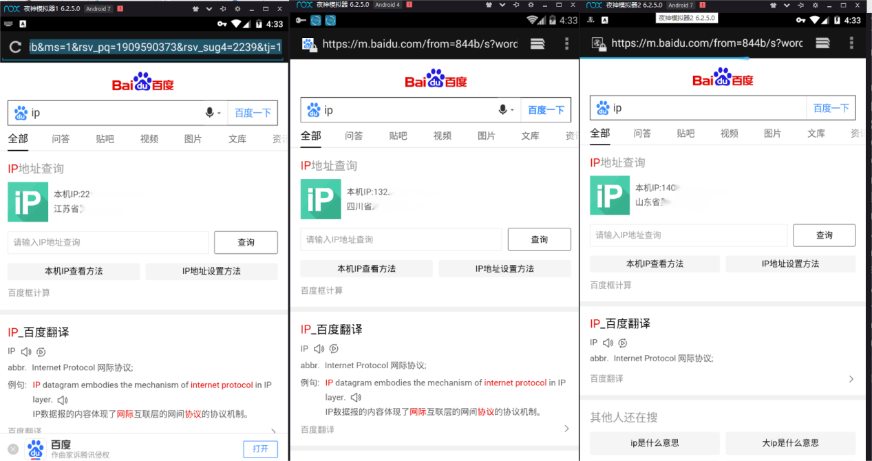 6,把每个模式器里都安装好柚子网络IP软件,注册账号,登陆连接成功之后我们来查IP,发现IP都不一样的,这样就可以登陆不同的账号,并且能够保证游戏账号的安全,就可以更加放心玩游戏。